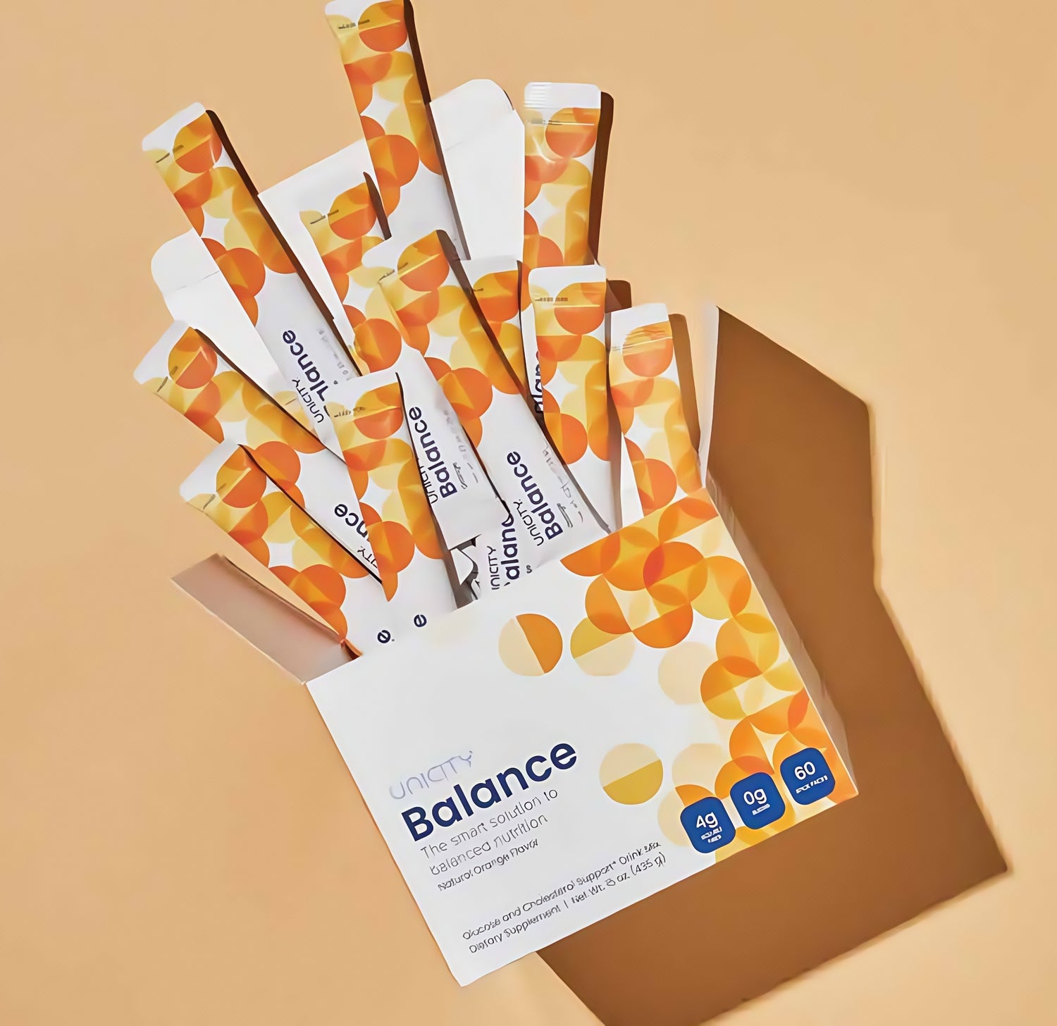 Unicity Balance is a pre-meal drink with a proprietary fiber matrix that includes bioactive plant compounds, polysaccharides, and micronutrients. The fiber matrix is designed to help ease some of the impact excess dietary carbohydrates and cholesterol can have on the body.
