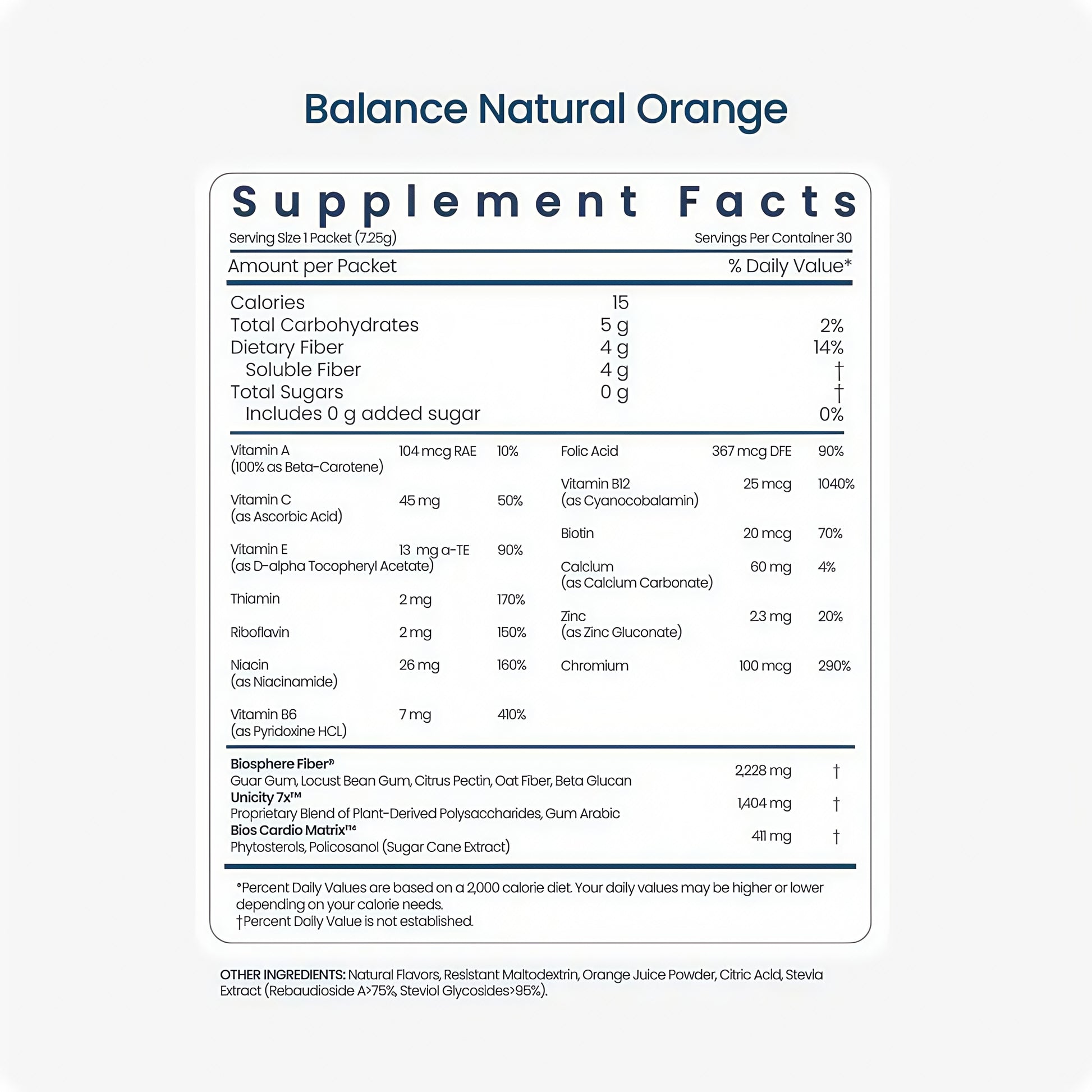 Unicity Balance is a pre-meal drink with a proprietary fiber matrix that includes bioactive plant compounds, polysaccharides, and micronutrients. The fiber matrix is designed to help ease some of the impact excess dietary carbohydrates and cholesterol can have on the body.
